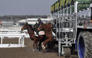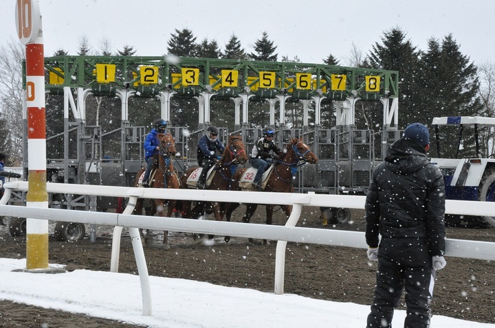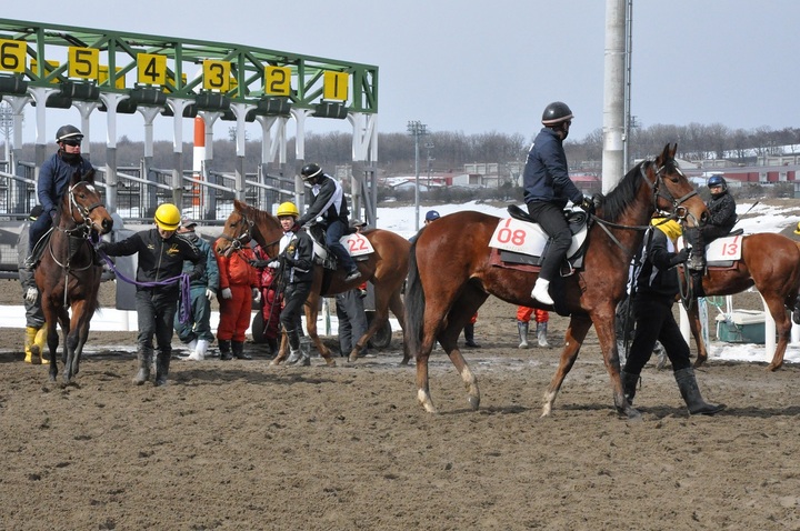 【シーズンオフ情報】発走練習実施中です! その他 2018.03.07 門別競馬場では、3月15日(木)から始まる能力検査に向け、2歳馬達が各厩舎スタッフと発走練習に取り組んでいます。3月6日(火)にも、時折雪が降るなか発走練習が行われました。 ホッカイドウ競馬開幕は4月18日(水)です。開幕までもうしばらくお待ちください。