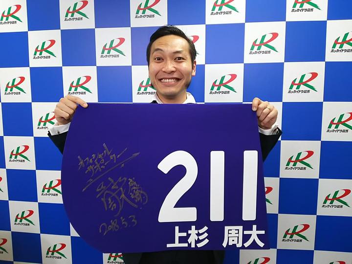ホッカイドウ競馬オフィシャルサポーター・上杉周大オリジナルゼッケン(サイン入り)プレゼント!