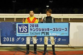 本日、門別競馬場では「2018ヤングジョッキーズシリーズ(YJS) トライアルラウンド門別」が行われ、第1戦はステラインベレッタ号に騎乗した井上敏樹騎手(JRA所属)が、第2戦はアポロストロング号に騎乗した木幡巧也騎手(JRA所属)がそれぞれ優勝しました。