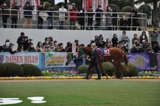 「最後まで脚は使ってくれていますしよく走ってくれました。乗り役もうまく乗ってくれました。今なら距離もこれくらいのほうが良いかもしれないですね。欲を言えば4角をうまく捌ければとも思いますが・・・・・。次走は選定されたらの条件付きですが香港(クイーンエリザベスⅡ世カップまたはチャンピオンズマイル)を予定しています。」