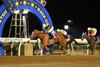本日のメイン競走、日本一早い2歳重賞競走 TVh杯 第44回 栄冠賞〔H2〕(リオンディーズ賞)[ ダート1,200m(外) 曇・良 ]が行われ、5番人気バブルガムダンサー号が2着ヘイセイメジャー号に1 1/2馬身差をつけて優勝しました。(タイム:1.14.4)