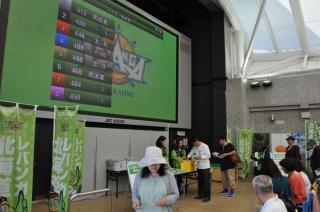 本日(7月3日)、門別競馬場では昨年に続き2回目となる、地元・北海道のプロバスケットボールチーム「レバンガ北海道」とのタイアップイベント「レバンガ北海道ティップオフナイター」を実施しました!イベントでは「レバンガ北海道×北海道日本ハムファイターズ コラボベースボールシャツ」&「2018-19 SEASON公式ファンブック」セットが当たる抽選会を実施した他、ファン交流会・予想トークステージではレバンガ北海道所属の多嶋朝飛選手・川邉亮平選手が登場し、軽快なトークで場内を盛り上げていただきました♪