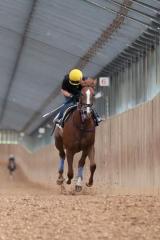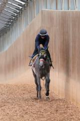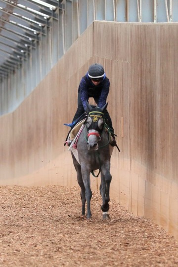「小柄で馬体もできているので、ハードな調教は行いませんでした。芝は向く走法ですし、よりスピードが生かせるでしょう。メンバーは強力でしょうが、期待しています。」