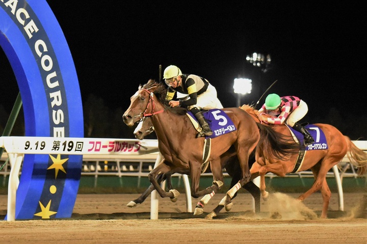 本日のメイン競走、UHB杯 第19回 フローラルカップ〔H3〕(タリスマニック賞)[ ダート1,600m(内) 曇・良 ]が行われ、1番人気ミステリーベルン号が2着ネーロルチェンテ号に1馬身差をつけて優勝しました。(タイム:1.44.3)