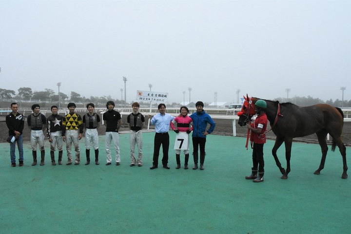 7月23日(木)、門別競馬 第5Rで加藤 誓二(かとう せいじ)騎手(名古屋所属、期間限定騎乗中)がコウユーモテモテに騎乗し、6,225戦目で400勝を達成しました。