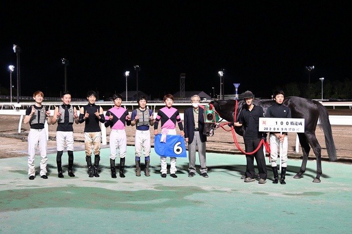 9月17日(木)、門別競馬 第9競走で小野 楓馬(おの ふうま)騎手(小野 望きゅう舎所属)がキタノマナザシに騎乗し976戦目で100勝を達成しました。