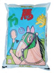 『軽種馬から生産された堆肥をふんだんに使い、肥沃な土地、冷涼、名水に恵まれた環境で丹精を込めた実らせたお米です。』