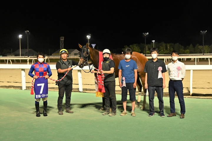 また、同馬を管理する山崎裕也調教師と騎乗した松井伸也騎手はともにノースクイーンカップ初勝利となりました。