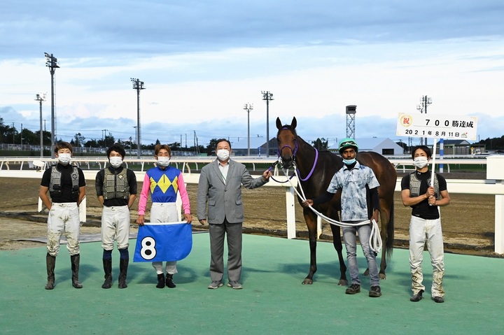 8月11日(水)、門別競馬 第8Rでメイムが1着となり、管理する桧森邦夫調教師は700勝(7,690出走)を達成しました。