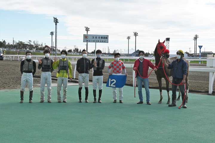 亀井洋司騎手300勝達成 その他 2021.11.03 11月3日(水)、門別競馬 第2競走で亀井 洋司 (かめい ようじ)騎手(佐々木 国明きゅう舎所属)がテナチュールに騎乗し5,981戦目で300勝を達成しました。