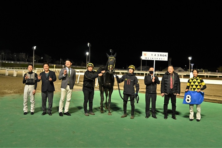 本日の第7競走でアイコトバが1着となり、管理する田中 淳司 調教師は、2021年シーズンの勝利数が143勝となり、ホッカイドウ競馬におけるシーズン最多勝利記録を更新しましたのでお知らせいたします。