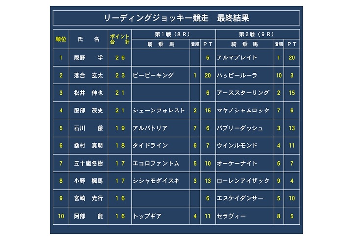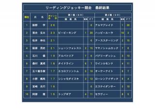 なお、リーディングジョッキー競走の結果については以下のとおりとなりました。