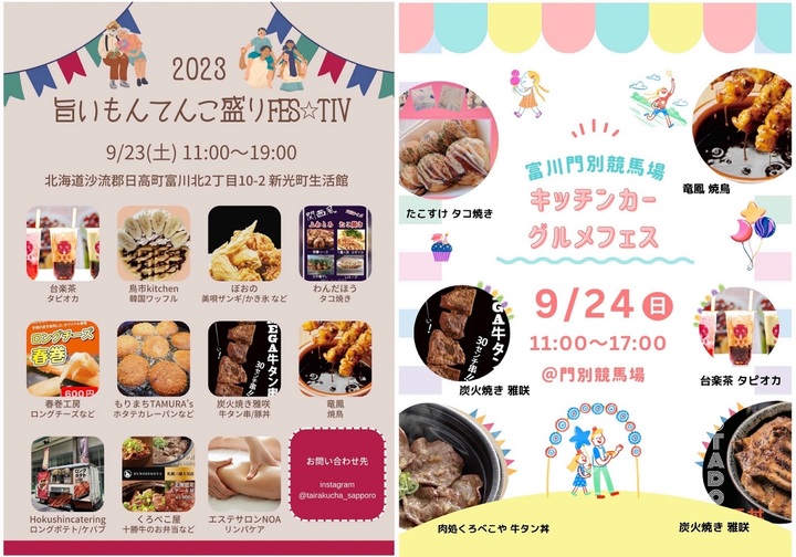 9月24日(日)と10月1日(日)門別競馬場において、以下のイベントを実施いたします。皆様のご来場お待ちしております。