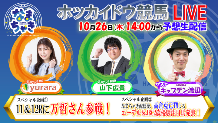 YouTube【公式】 ホッカイドウ競馬「なまちゃきLIVE」のゲスト紹介(10月26日)