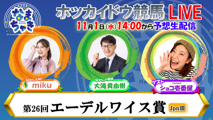 YouTube【公式】 ホッカイドウ競馬「なまちゃきLIVE」のゲスト紹介(11月1日・2日・3日)