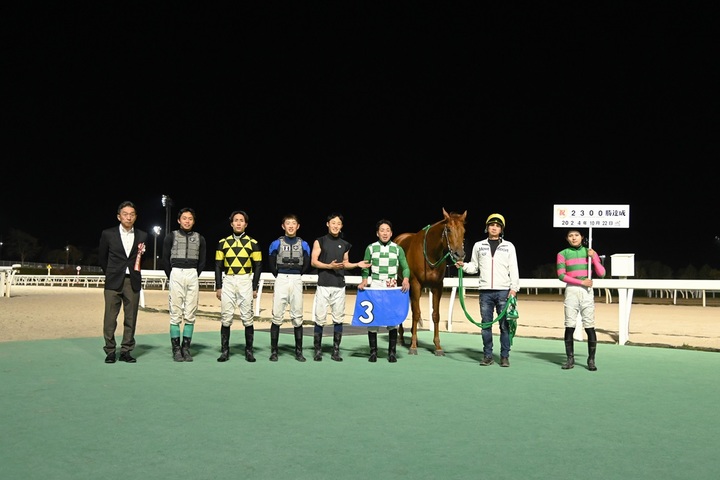宮崎光行騎手2,300勝達成 その他 2024.10.22 10月22日(火)、門別競馬 第11競走で宮崎 光行(みやざき みつゆき)騎手(松本 隆宏きゅう舎所属)がディーエスエールに騎乗し15,614戦目で2,300勝を達成しました。