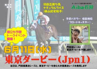 Aiba石狩では、6月11日(水)にブロードキャスター坂田博昭さんによる場立ち予想トークイベントを行いますので、皆さまぜひお越しください。また、当日のホッカイドウ競馬的中馬券をお見せいただいたお客様にヨーグルッペのプレゼントをお渡しします。対象となる馬券等詳細につきましては下記画像をご参照ください。