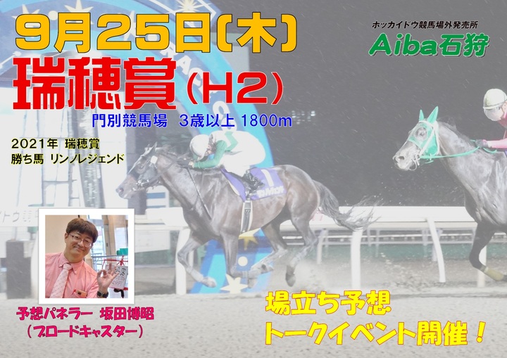 Aiba石狩では、9月25日(木)にブロードキャスター坂田博昭さんによる場立ち予想トークイベントを行いますので、皆さまぜひお越しください。