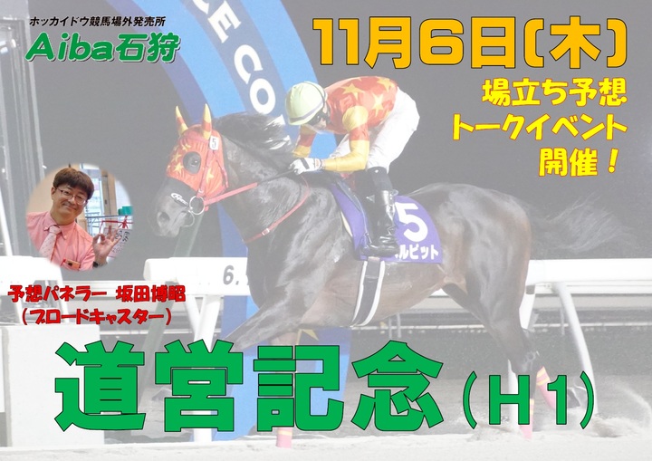 Aiba石狩では、11月6日(木)にブロードキャスター坂田博昭さんによる場立ち予想トークイベントを行いますので、皆さまぜひお越しください。